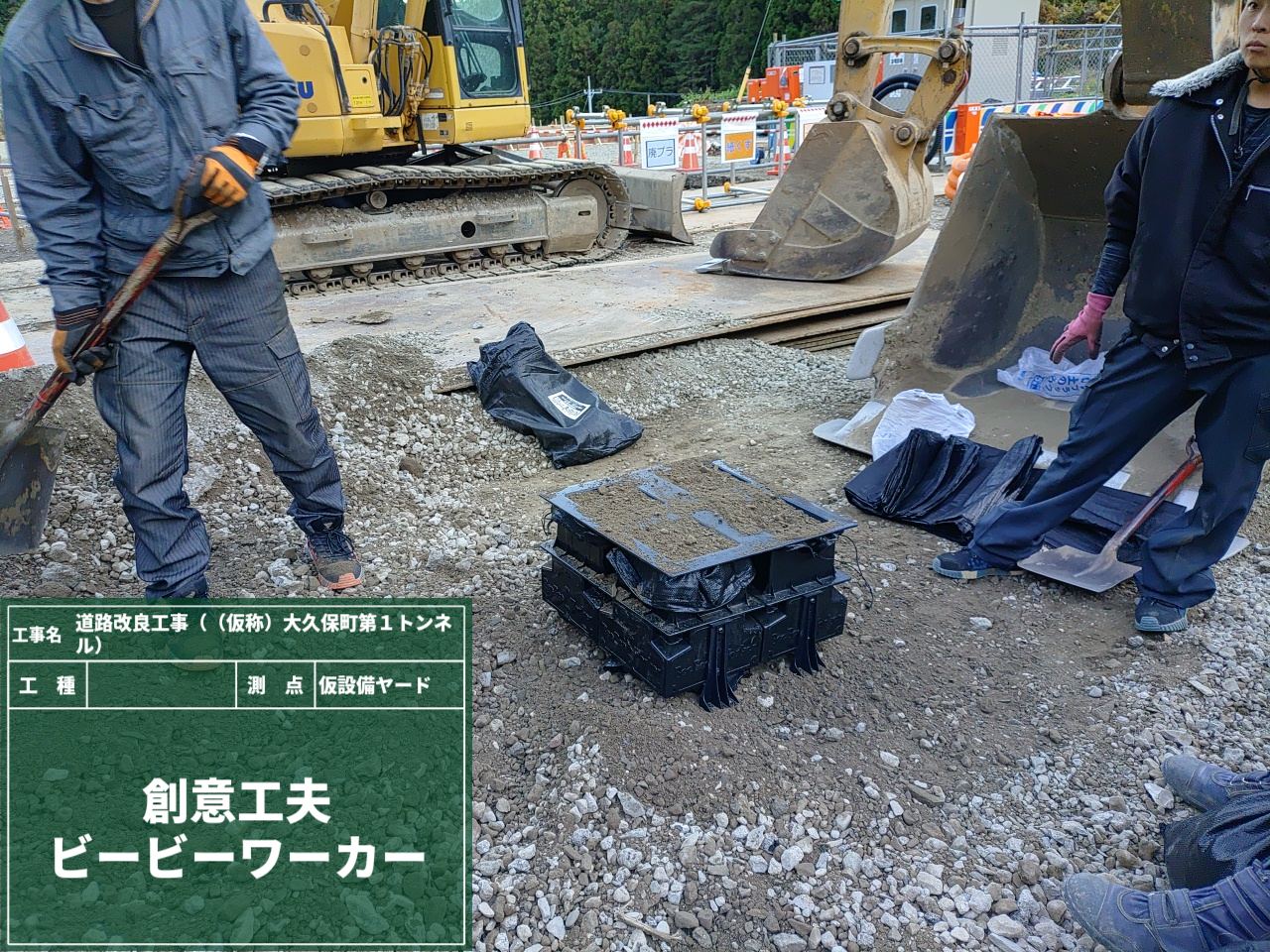 簡単・軽量・安全・低コストで同じ土量の土のうができるので、現場で大活躍中です😊
