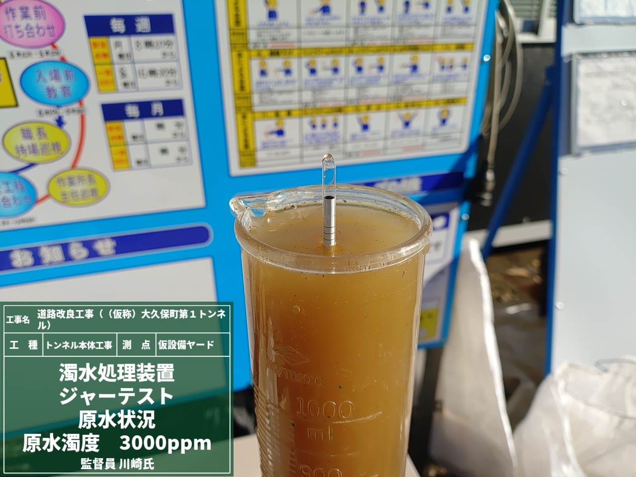 現場で発生する濁水に対して、最適な凝集剤(PACや高分子凝集剤など)の注入量を決めるための現場試験の様子です👇👇👇