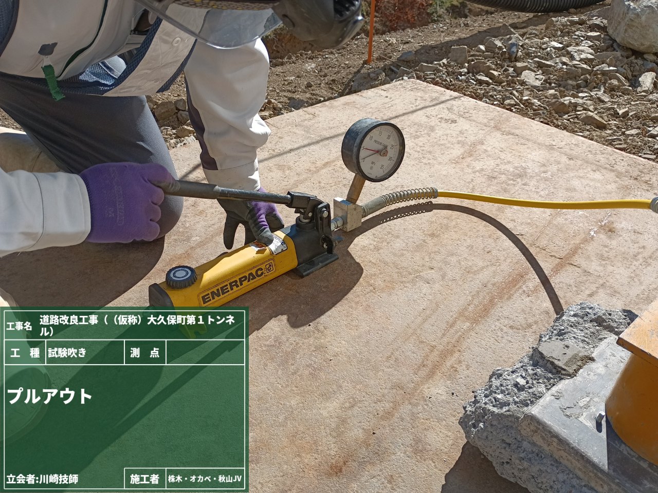 プルアウト試験・・・吹付けたコンクリートの初期強度(特に材齢3~24時間程度)を現場で確認するための試験です。