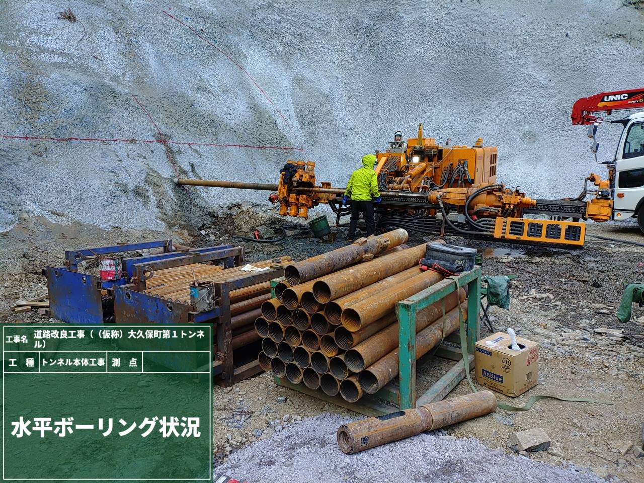 本体トンネルの掘削工事を行う前に、トンネル全線でボーリングマシンを使って、地面の中の土や岩を調べる「地質調査」をしています⛏️