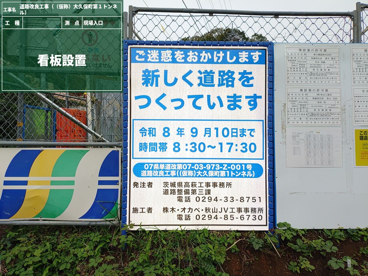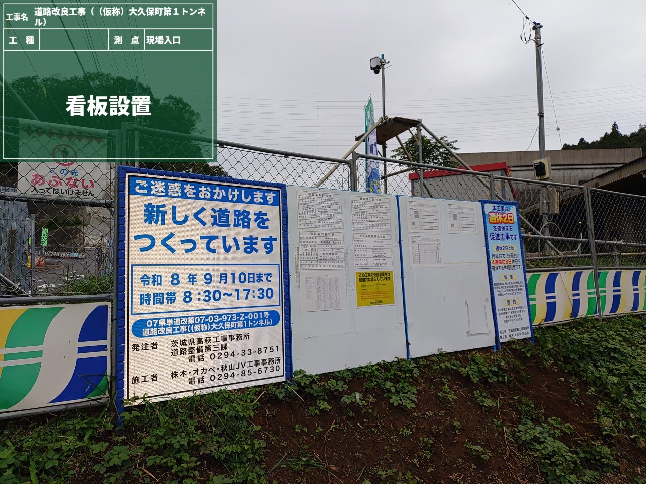 まず、これから工事車両がたくさん往来する場所には、ドライバーさんにしっかり気付いて貰えるよう、高さ制限の”旗”を目立つように設置。