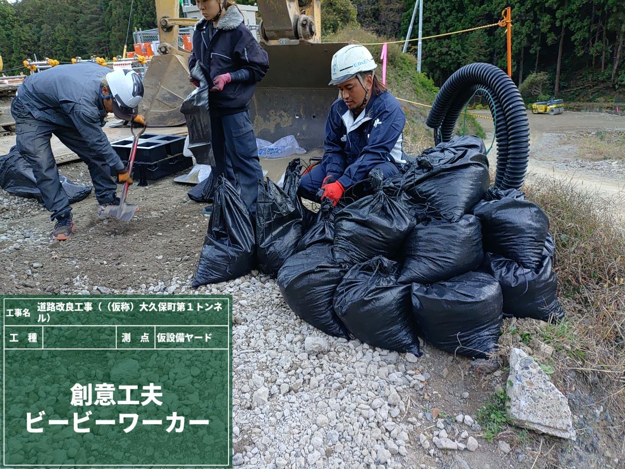 簡単・軽量・安全・低コストで同じ土量の土のうができるので、現場で大活躍中です😊