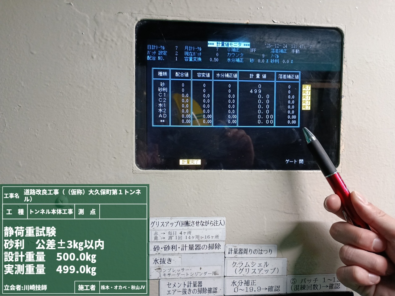 (コンクリート造りに必要な骨材・セメント・水などを計量するため、そもそも計量器が合っていなければとんでもないことに…)