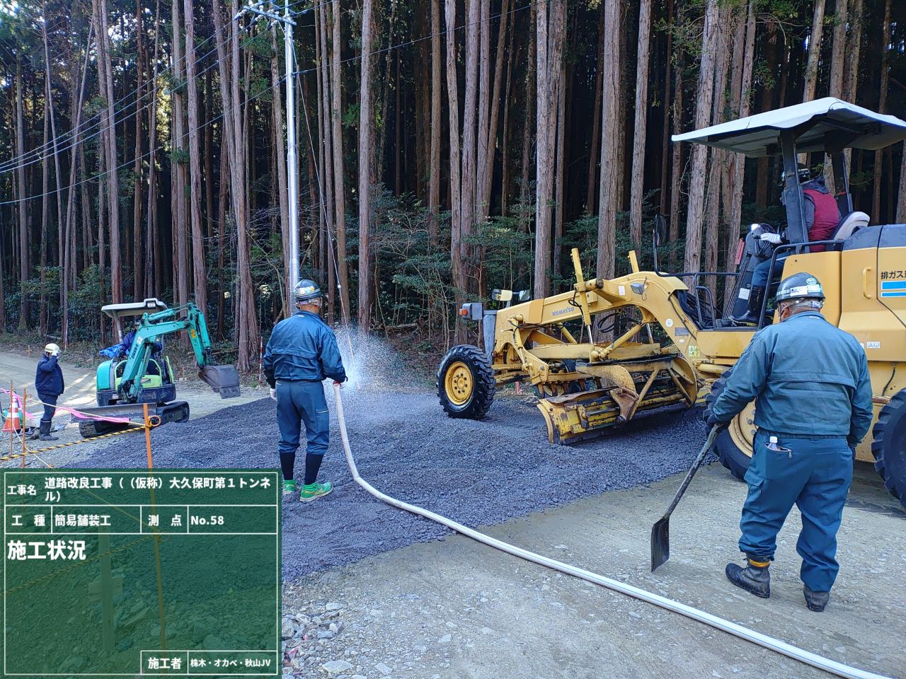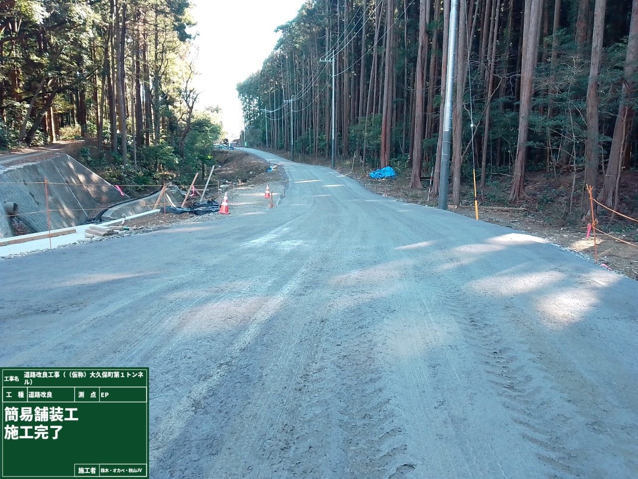 実はこの仮設道路、今回は砕石を敷いて終わり…ではなく、簡易舗装で仕上げました✨
