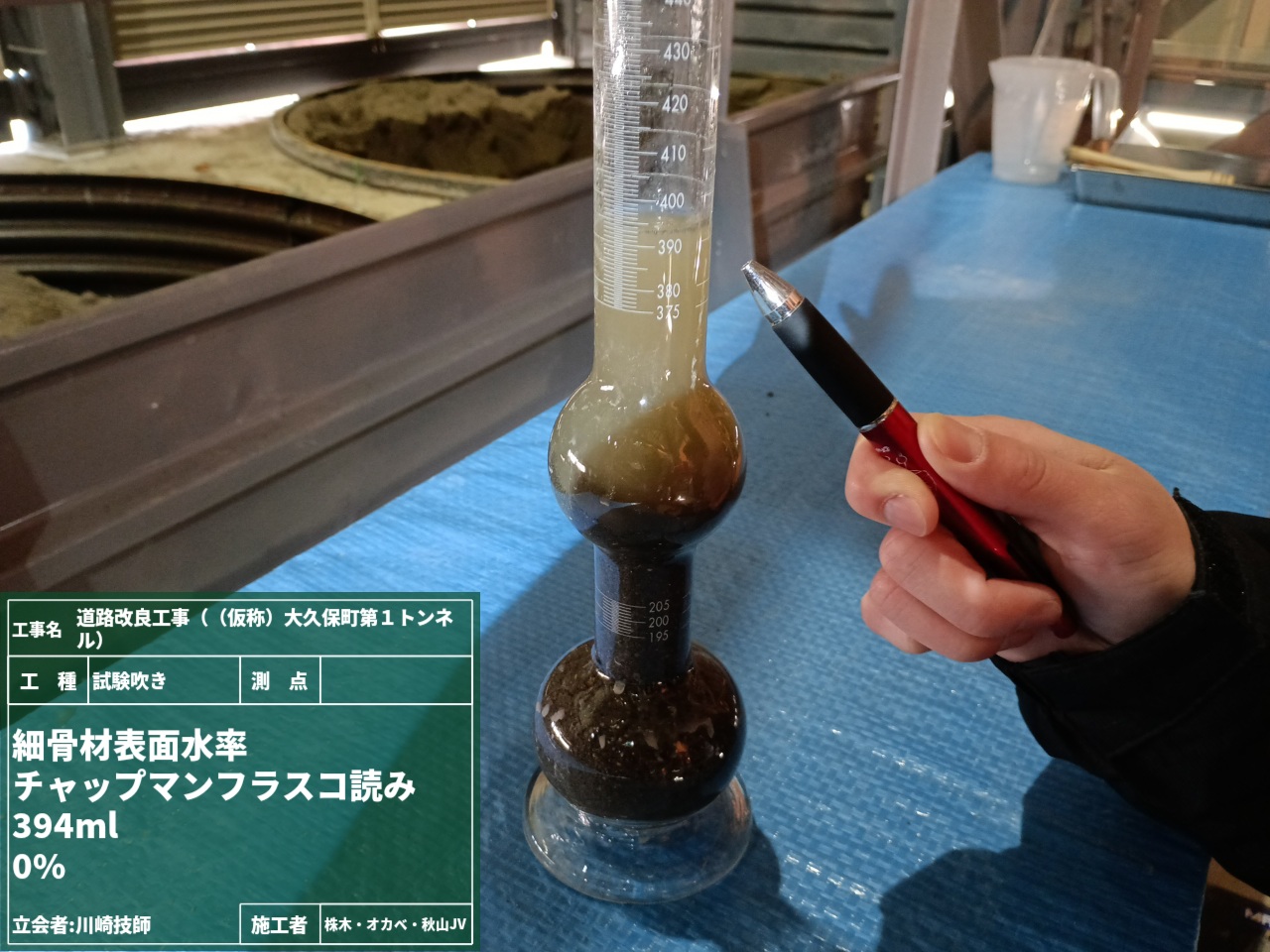表面水率試験🧪・・・細骨材の表面に付着している水分量を測ります。